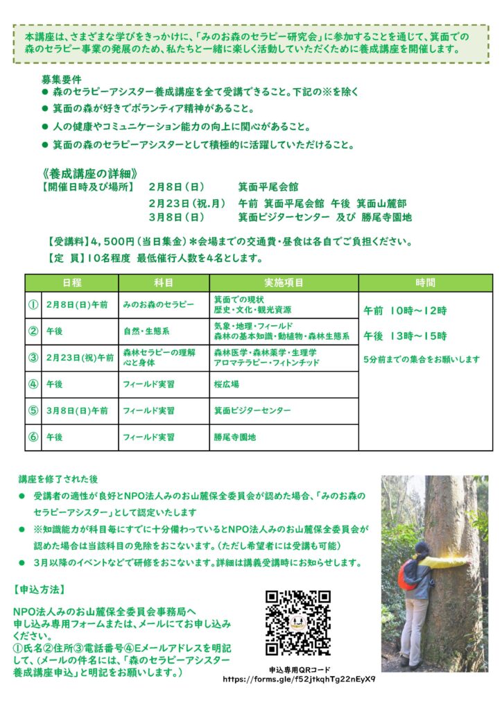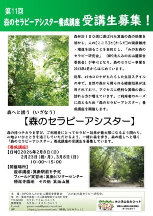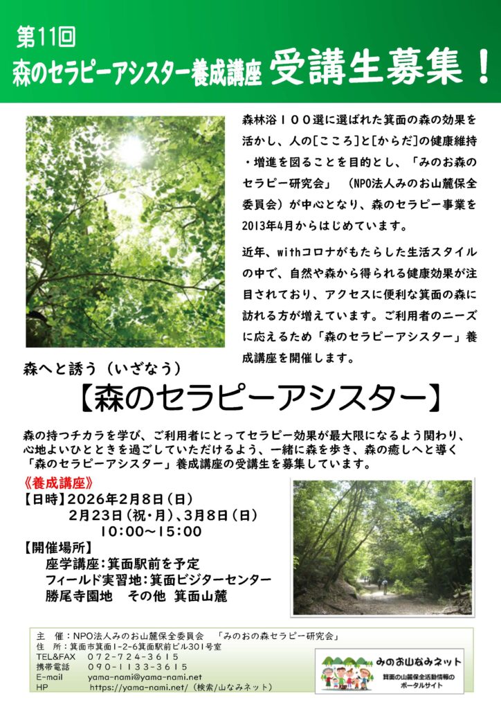 第11回みのお森のセラピーアシスター養成講座募集を開始します。