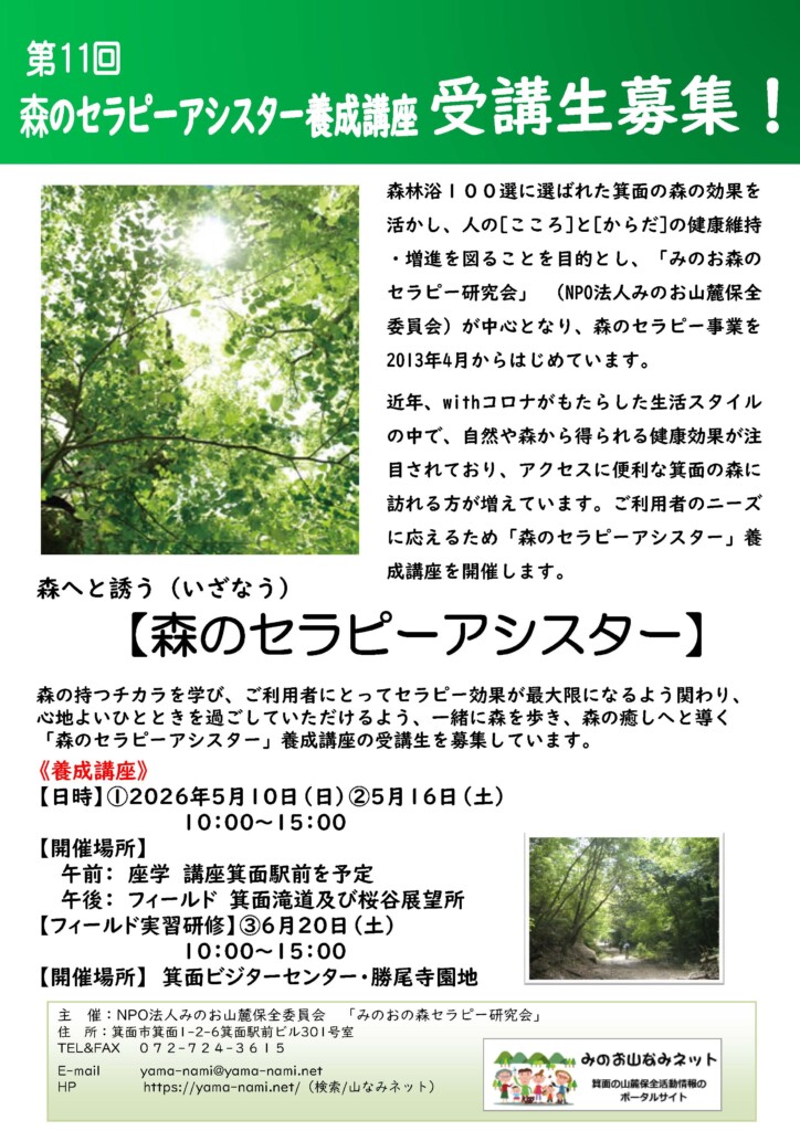 第11回みのお森のセラピーアシスター養成講座 募集を再開します。!!