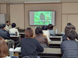 「野鳥」の講義では中瀬校長から鳥の囀りを人の言葉で表す「聞きなし」、ホトトギスによる「托卵」と呼ばれウグイス等他の鳥に育てさせるという習性、実は「鳥類は恐竜である」という説が常識になりつつある等々興味深いお話が紹介されました。