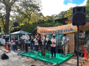 10時30分。オープニングは、箕面の森の音楽会実行委員会の皆さんの音楽演奏で始まりました。