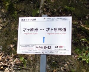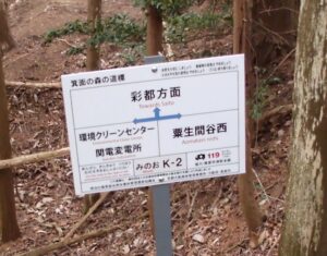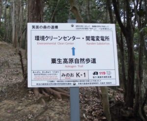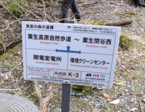 明治の森箕面自然休養林管理運営協議会は、新規の緊急ポイントを粟生高原自然歩道やしおんじ山(池の谷緑地)周辺に計7か所設置しました。