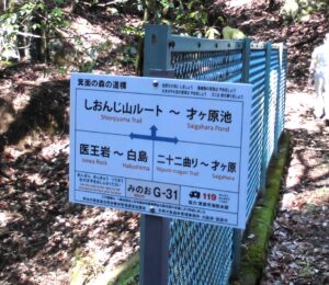 2025年度(2026年3月末)には、新規の緊急ポイントを粟生高原自然歩道に3か所、しおんじ山(池の谷緑地)周辺には4か所の緊急ポイントと案内板を2か所設置しました。緊急ポイントは今回の7か所を加えて、合計174か所になります。