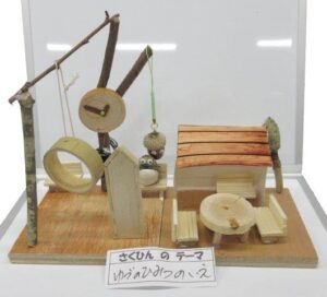 11月9日(日)、毎月第二日曜日に行っている「森の自然工作教室」を開催しました。紅葉も始まりつつあり、ビジターセンター周辺も賑わい始めるころですが、この日は肌寒く、雨が降り続き、人影も少なく静かな一日でした。工作教室は4組、15人の方に参加いただきました。いずれもリピータの方で、今回は何を作ろうかと、いろいろ考えて材料を選んでおられました。