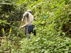 「こもれびの森」Aネット内ハイキング道沿いのツル切りや下草刈りをパト隊とみのおフォレスターズで行いました。