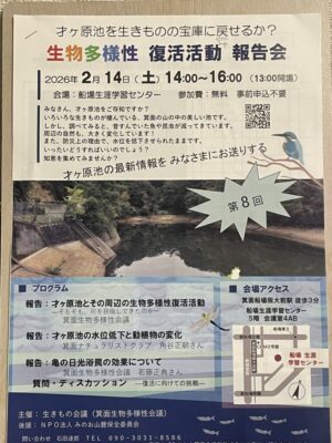 2月14日(土)生きもの会議(箕面生物多様性会議)主催の「第8回生物多様性復活活動報告会」が行われました。