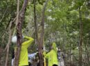 「こもれびの森」Aネット内ハイキング道沿いのツル切りや下草刈りをパト隊とみのおフォレスターズで行いました。