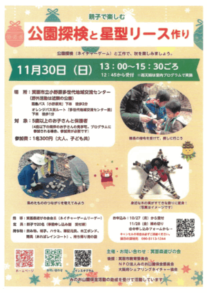 11/30(日)箕面森遊びの会が「後援探検と星型リース作り」のイベントを開催します。10/27~事前予約受付!